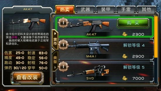 要是在电脑上玩过类似游戏的玩家,想必都清楚单靠一把AK47远远不够。为了显著提升胜率,以及获取金币、经验和白钻的效率,你至少还得备上一把冲锋枪、一把霰弹枪和一把狙击枪。至于轻机枪,就看个人喜好了,初期不一定非要购买,毕竟它的价格相对昂贵。
