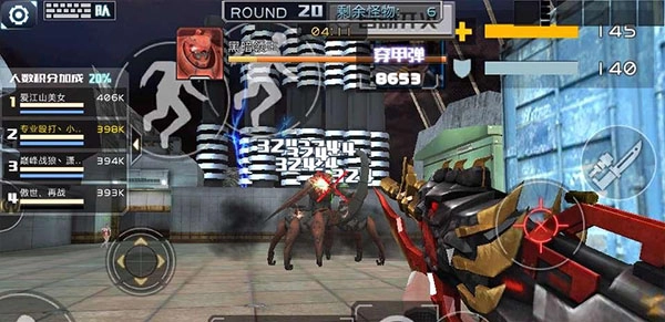 最后一关是关键,分数没达标的得抓紧时间去打boss。和队友分四个方向站位,每个方向一个人。后退的时候要留意身后有没有队友,避免被boss一炮击中两人。另外,尽量瞄准头部攻击!