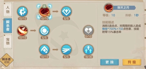 大多数云上城之歌瞬杀者的加点方式都遵循这个路数,疾影突袭(消耗连击点的AEO技能)和刀扇(扇形范围伤害+眩晕)这两个技能的效果平平,因此使用频率不高,不过也算不上是完全没用的技能,还需要大家去进一步探索开发。