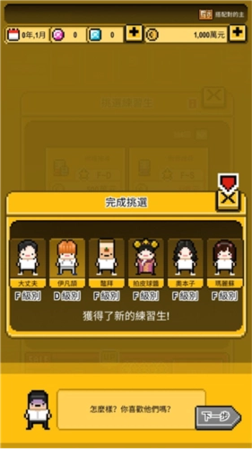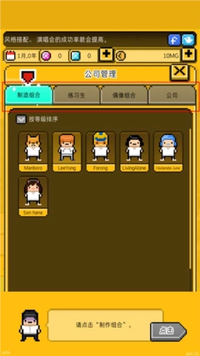 (1)打造专属组合,选择自己心仪的练习生组建团队,这样能更顺利地实现出道目标。