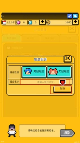 (2)下面正式开始进行组合创建,第一步是选择组合的性别和名称,完成后点击下方的制作按钮。