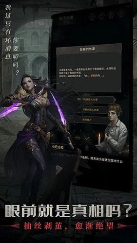 邪恶的生物、诡秘的陷阱、神秘的路人,在冒险的旅途中,意外情况常常接连发生。我们收集线索,拼凑真相,但这一切真的像我们看到的那样吗?越靠近真实,或许就越陷入绝望。