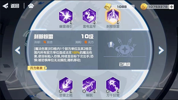 1、每次释放技能后,所有技能的冷却时间减少1回合;专属效果额外增加对斜十字距离为2的敌方单位的作用,同时法攻提升10%