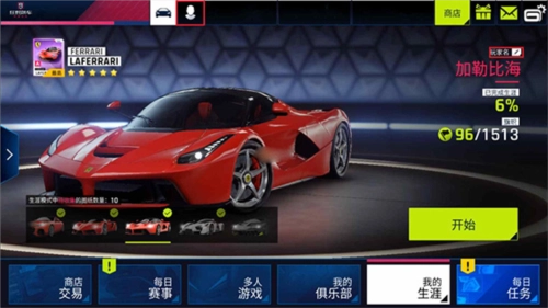 3、因为当前是测试版本,所以目前我们仅能体验生涯模式和每日任务。生涯模式的界面风格与狂野飙车8相比有了显著变化,采用不规则方块来呈现需要挑战的关卡。