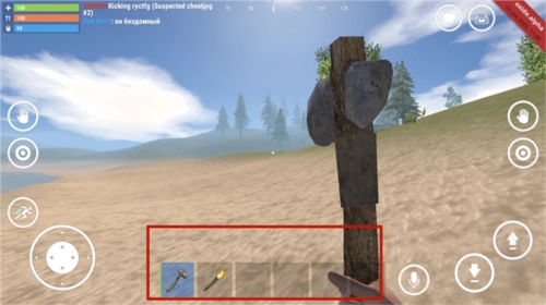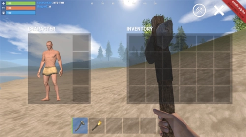 2、点击右上角的背包图标即可打开背包界面,在这里你能查看制造配方、可制造物品列表,以及当前的穿戴装备信息。你可以用手指拖动背包内的物品,将其放置到屏幕正下方的腰带上;点击腰带上的不同物品,就能切换当前激活的物品,方便随时使用。
