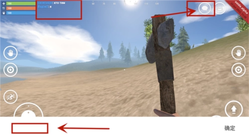 首先寻找树木、木材堆和岩石块,然后用石头来收集木材与石头资源。