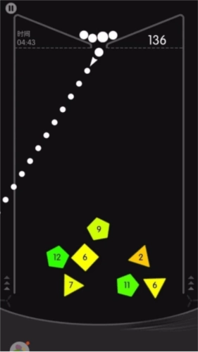 当几个方块形成包围时,借助墙壁把球反弹进它们的包围区域内,能更高效地完成消除。