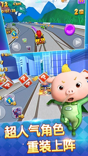 1.把跑跑卡丁车的玩法和猪猪侠的人物元素相融合,为玩家带来全新的体验。