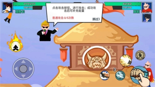 这款游戏的可操作性十分出色。左下角的按钮用于操控人物移动,右侧分布的多个按钮则对应着角色能够施展的各类技能。