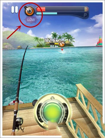 从“low”位置开始按住卷线按钮,需要注意的是按住后就不能松开,这样才能打出很高的连击。由于是从底部开始,力量槽距离填满还有很长一段距离,这就为玩家获取高连击数提供了足够的空间。