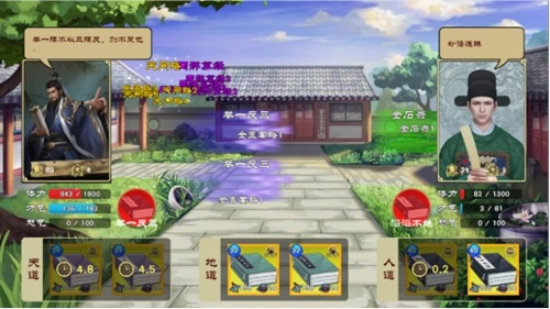 文官路线的核心战斗系统是论战,从科举阶段到内阁会议,它会始终贯穿这条发展路径。和论战相关的属性包括智力、口才、礼法、算术,以及对应的卡牌。