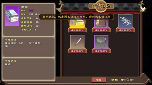 点击“智取”按钮后,系统会展示当前角色携带的物品。要是物品里有书籍,自然可以选择智取的方式,不过这会让角色的恶名值上升。一旦恶名值达到上限,就无法再使用智取功能了。