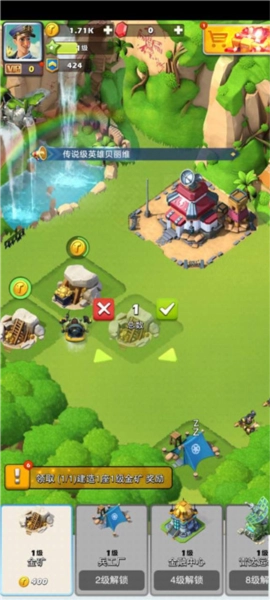 7、点击建造按钮,建造多座金矿;此外,建筑还能通过拖拽合并的方式进行升级。