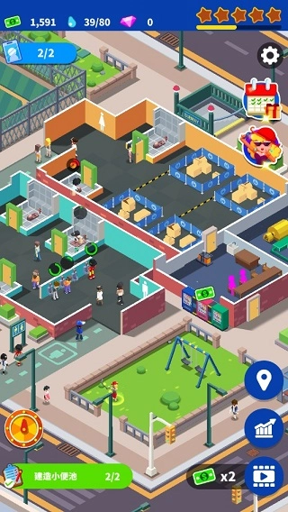 游戏内提供了丰富多样的题材供玩家自由发挥,玩家可在厕所发展起来后在周边建造各种建筑,比如酒吧、雇佣机器人、篮球场、商城等等,玩家可在资金充裕的情况下尽情享受经营的乐趣。