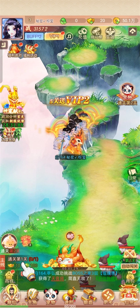 搭配各类丹药、技能升级、PVP等玩法。