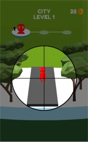 玩法轻松简单,进入关卡后开启狙击模式,玩家只需把十字准星移到指定位置,就能完成狙击。为了让更多玩家适应,子弹发射后,被瞄准的角色会停止运动,方便玩家击中目标。