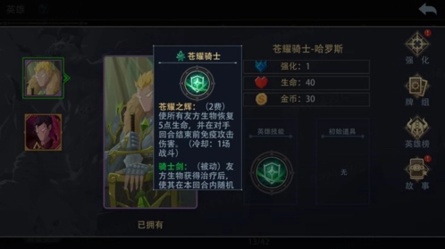 苍耀骑士是所有玩家解锁的第一个英雄,也是新手教程中的英雄。