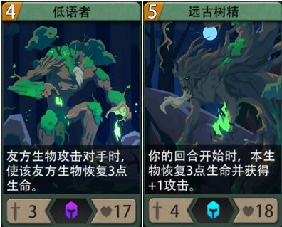初始牌组中的树妖与金刚猩猩,本身就和苍耀骑士的技能有着不错的配合度。比如金刚猩猩,它每回合都能稳定为自身回血,以此触发被动效果来提升攻击力,不仅生存能力极强,输出能力也丝毫不弱。