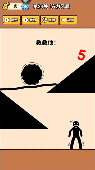 3、手指画出一条线阻挡石球滚落,就能通关了。