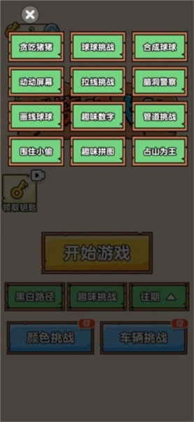1、在《燃烧吧大脑》中点击开始就能进入普通模式,此外还有黑白路径、趣味挑战、往期内容、颜色挑战、车辆挑战等多种不同玩法。