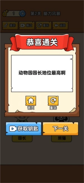 3、第二关脑力风暴,动物园里谁的地位最高?
