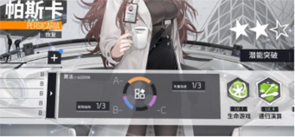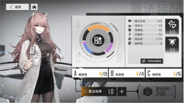 算法系统包含A稳定性、B攻击性、C特异性三个区域,依据职业差异,各区域的可用空间也有所不同。