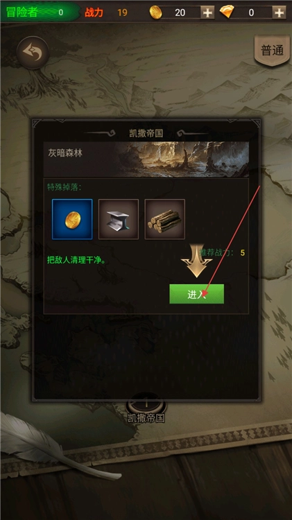 2、在主界面,通过下方蓝色传送门进入关卡,点击【进入】,开启冒险。