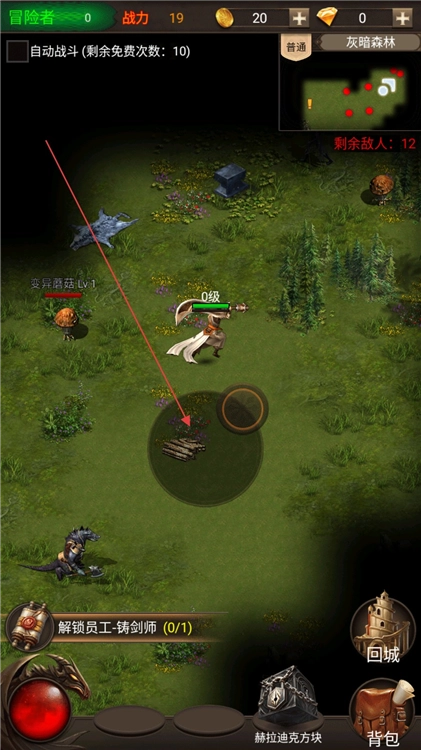 3、在关卡中可选择自动或手动战斗模式,通过移动角色、消灭12个敌人、收集木材等资源来增强自身战力,解锁新员工并推动任务进程。