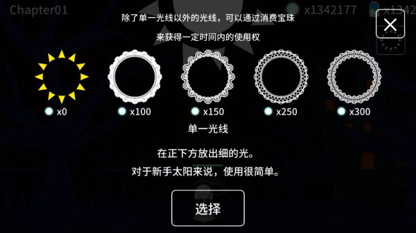 游戏的操作设计得十分直观,玩家很容易就能掌握。只需触摸屏幕,就能操控阳光的走向,以此照亮前行的道路,同时驱散挡路的敌人。需要留意的是,当少女与敌人发生接触时,她手中的洋伞可能会掉落,这时玩家要特别谨慎,不能让阳光长时间直接照射少女,否则她会消失。随着游戏的推进,玩家击败敌人后能获取宝珠,这些宝珠可以用来提升阳光的各项能力,让玩家在策略上有更多的选择空间。