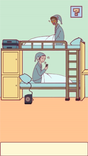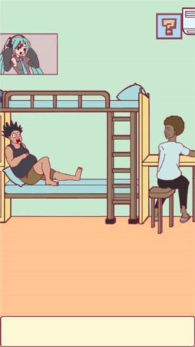 1、这款同样是卡鲁秋工作室推出的第二部恶搞休闲解谜作品,它以学生的学校宿舍为主题背景,玩家在游戏中扮演一名刚入学的新生,为了能更快融入校园生活、与室友和谐相处,需要通过解开各类谜题来克服遇到的困难与阻碍。