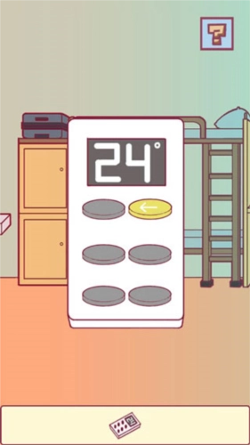 首先在右侧找到空调遥控器,接着关闭向左吹风的按键就能顺利通关。