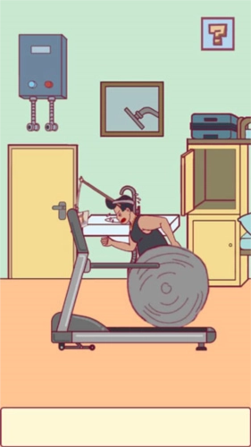 首先从右侧的垃圾桶里找出一张纸,接着点击跑步机使其运转起来,然后用纸描摹小伙脑海里想象的美女形象;之后从小伙右侧上方的箱子里取来一个三脚架,把它架在跑步机上;最后将画好的图片固定在三脚架上,再点击跑步机就能开始燃烧卡路里了。