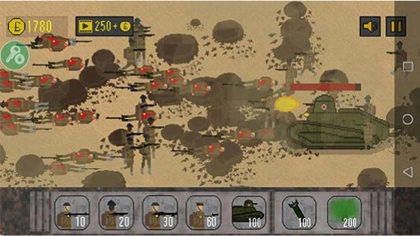 4、接下来,你可以点击购买士兵,地面上的数字代表所需花费的金币,到了游戏后期还能解锁坦克等其他单位,玩起来十分有意思。