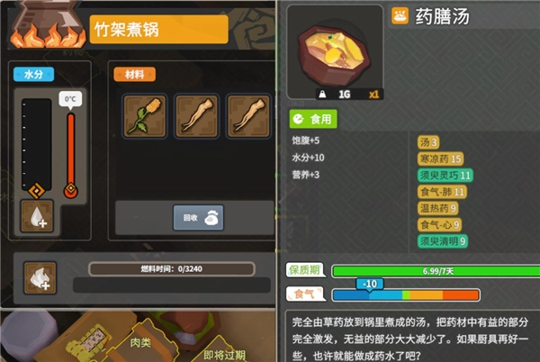 缺点:缺乏营养。月当归生长在寒冷的山地,需要培育一段时间才能收获。其寒气较重,一次性饮用过多时,需搭配温性食物来调和,或者等待【食气平补】效果自动恢复至平气状态。