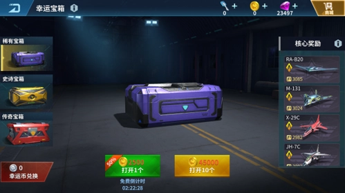 传奇宝箱里能开出的最优奖励是X级飞机,X级飞机是当前最顶级的飞机,这显然极具吸引力。而且传奇宝箱仍有开启的机会,尽管单次抽取的冷却时间长达2天,但总归为众多欧皇们留了一条途径,去见证单抽的奇迹时刻。另外值得一提的是,奖励飞机中已剔除了B级飞机,这意味着只要抽出飞机,最低也能获得一架A级飞机呢。