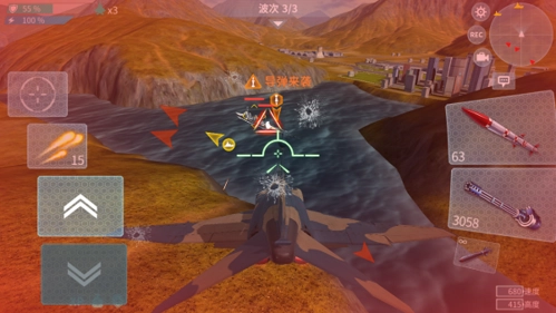 6、超震撼的视听特效:在音效拟真、画面精美、气势恢宏的《现代空战:3D》里,驾驶战机穿梭于沙漠荒原、巍峨雪山与摩天都市等众多作战空域。
