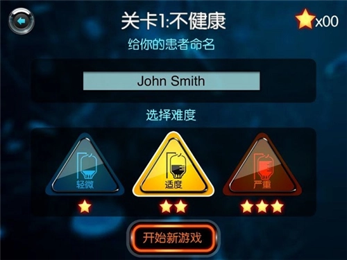 每一关开始前要留意病人的属性,不同病人各系统的破坏速度存在差异。第一关的病人有抽烟、吃快餐和熬夜的习惯,我们可以通过升级他的神经系统,使他更频繁地出现熬夜失眠的情况。