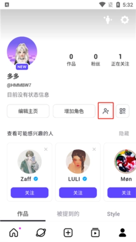 4、进入软件首页,点击角色,开始装扮自己的崽崽;