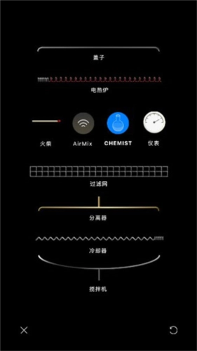3、选好后,返回界面并点击左上角,就能使用电热炉、盖子、火柴等实验器材,选择想要执行的操作。