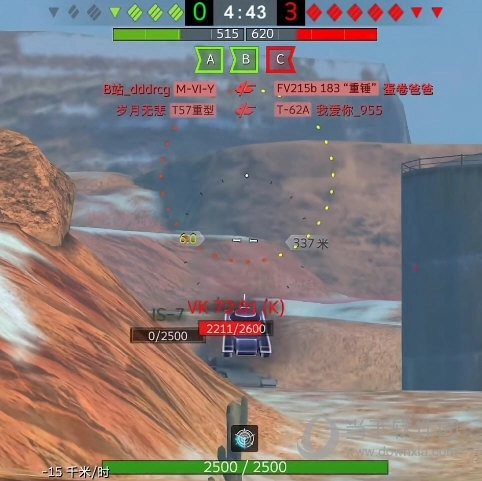 这对初速度高的火炮而言很容易实现,但对于初速度较低的火炮来说就颇具难度了。以KV-2的152mm M-10榴弹炮为例,其HE弹的飞行速度为525米/秒,这意味着攻击远距离目标时需要一定的飞行时间,因此你得相应增加提前量。实际上,提前量的具体数值会根据实际情况动态调整。若你真心想规避炮弹,核心原则是:永远不要让敌人预判出你的移动轨迹。