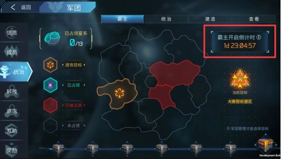 在霸主计划启动期间,星系主权才会处于可占领状态,相关倒计时会在军团统计界面和星图界面同步显示提示!
