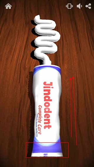 4、点击后,页面里会出现一支拧开的牙膏,接着我们从顶部向上挤。牙膏会越挤越多,挤完后又会重新开始,特别减压。