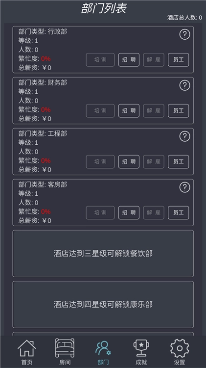 3、进入主界面后,先完成酒店的开业前期准备工作。