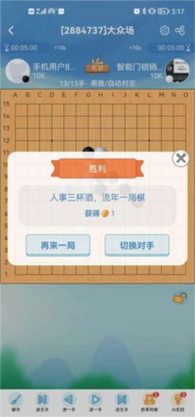 4、持续结交志同道合的棋友,借助多样的聊天渠道,切磋棋艺,分享围棋之路上的经历与感悟。