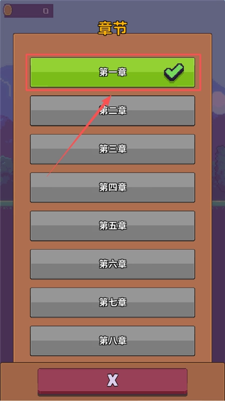 4、当你想要挑战不同关卡时,点击章节按钮即可,在那里可以选择从第一章到第八章的关卡,已解锁的章节会显示绿色对勾标记。