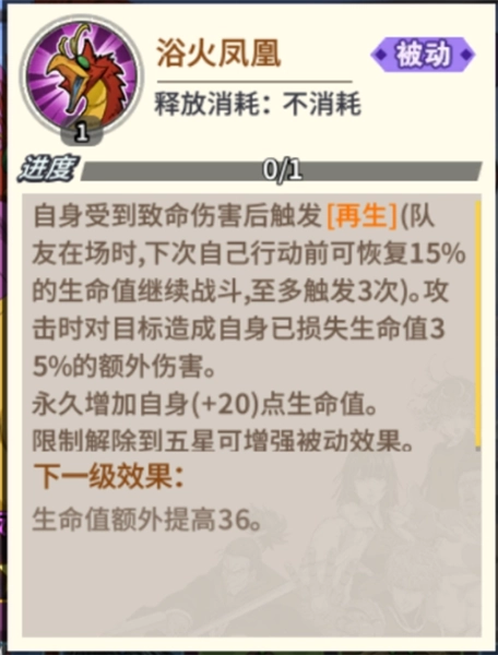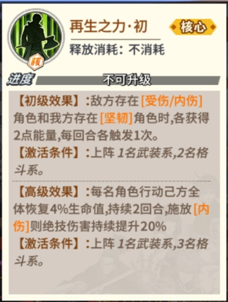 (2)提升自身与同列队友的生命上限:普通效果为20%,持续3回合;极效果为25%,持续5回合;究效果为30%,持续10回合。