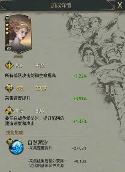 采集时带上这个英雄,她会带来一定比例的基础保护资源。要是阿缇娜等级达到120级且强化已满级,采集后就能获得约23%的资源。