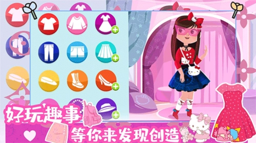 1.多样的装扮选择:这里有海量超萌的Hello Kitty及它的小伙伴们的服装、发饰、首饰等装饰好物,玩家能随心搭配,打造专属于自己的个性时尚造型。
