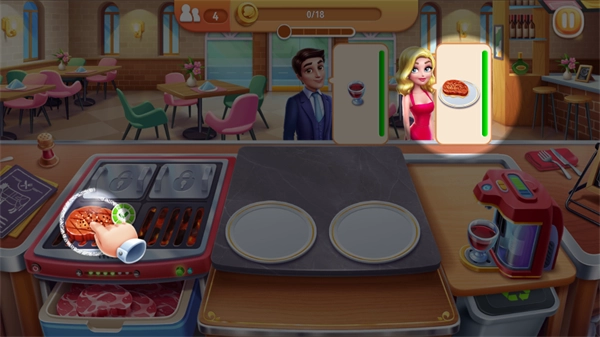 2、食材制作完成后,点击该食材即可将制作好的食材交付给顾客,饮品的操作方式与此相同。