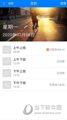 1、用户可通过该软件完成上下班考勤打卡,也能随时查看自己每日的考勤情况。